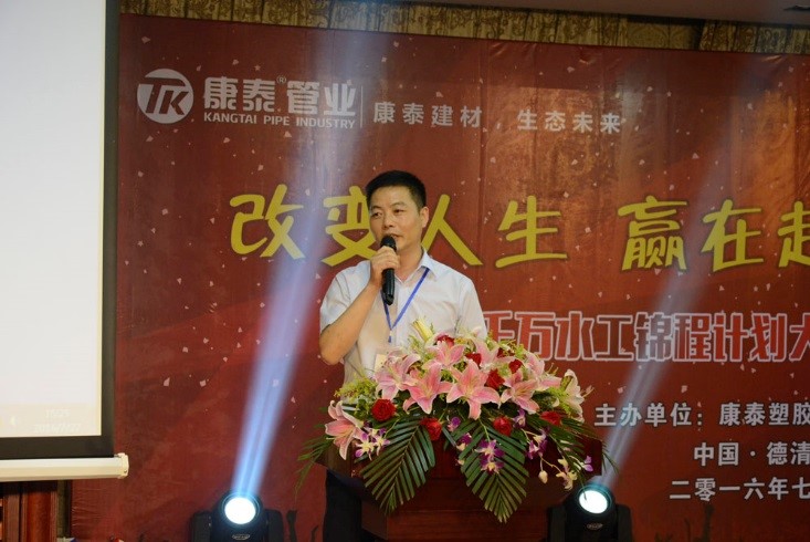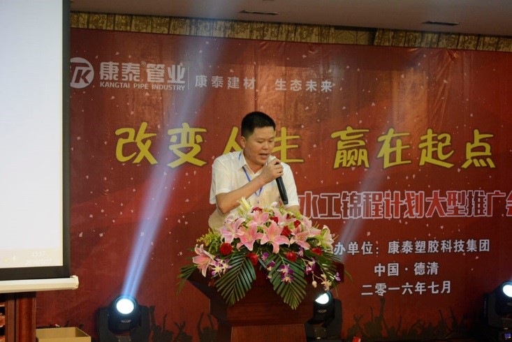 ? ? ? ?會(huì)上,浙江基地總經(jīng)理潘明正首先致詞,代表康泰集團(tuán)對各位嘉賓的到來表示熱烈的歡迎和衷心的感謝,并預(yù)祝會(huì)議取得圓滿成功,祝各位水電大師前程似錦,事業(yè)蒸蒸日上。