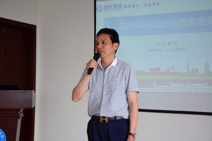 ? ? ? ?創(chuàng)新是一個民族進步的靈魂,是一個國家興旺發(fā)達的不竭動力;創(chuàng)新也是一個企業(yè)在現(xiàn)代經(jīng)濟中不斷發(fā)展的重要組成部分。為了激勵員工的創(chuàng)新意識,傳遞公司以創(chuàng)新為源動力的價值導(dǎo)向,5月31日上午,“‘創(chuàng)新求變、基業(yè)長青’康泰集團首屆創(chuàng)新提案頒獎大會”在集團培訓(xùn)室舉行。康泰集團董事長兼總裁林云青出席典禮并作重要發(fā)言。康泰集團各中心總監(jiān)、車間主任及相關(guān)人員等參加了大會。大會由人力資源中心主辦,人力資源副總監(jiān)呂旭梅主持大會。