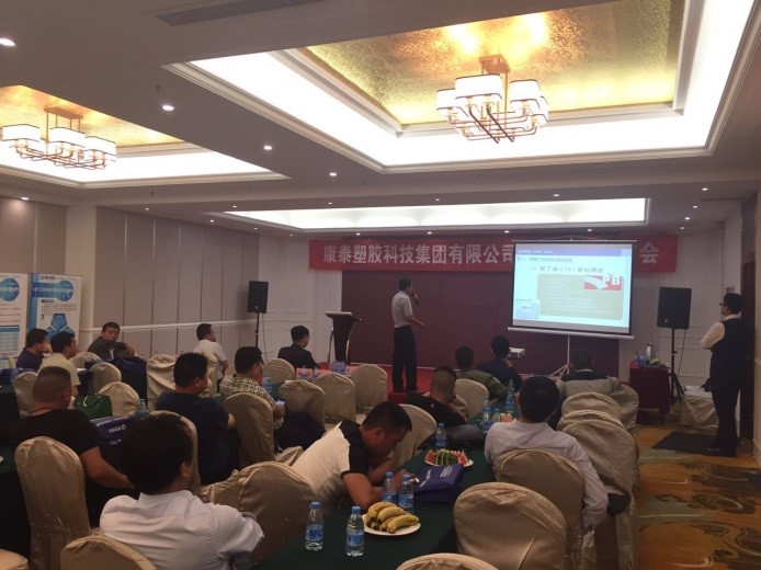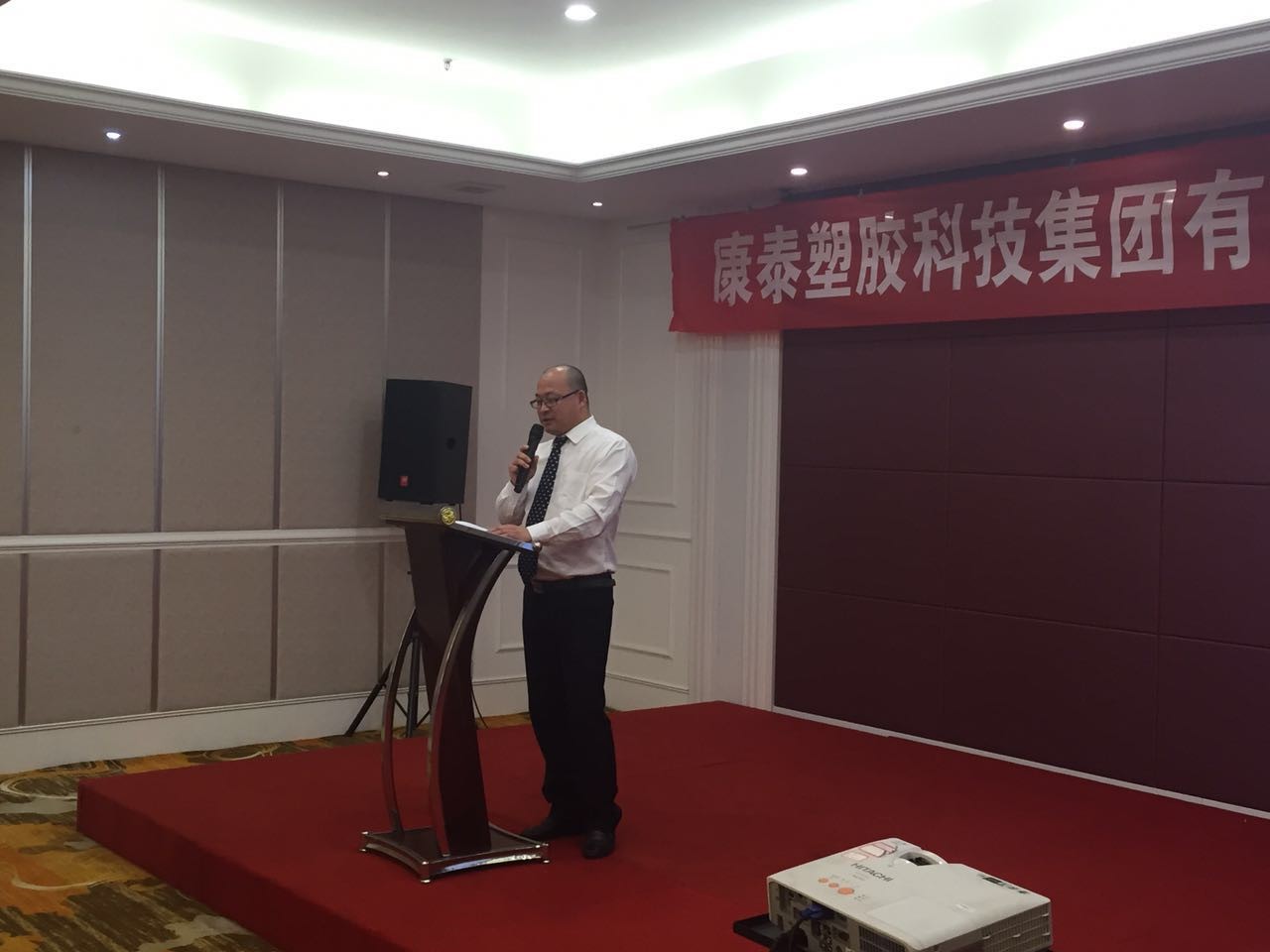 ? ? ? ?會(huì)上,康泰塑膠科技集團(tuán)河南基地生產(chǎn)負(fù)責(zé)人林化平圍繞康泰的多款新產(chǎn)品的優(yōu)點(diǎn)和特性,從設(shè)計(jì)理念、開(kāi)發(fā)背景、技術(shù)特點(diǎn)、產(chǎn)品原料、生產(chǎn)設(shè)備、性能對(duì)比、實(shí)驗(yàn)分析、應(yīng)用領(lǐng)域、工程案例等方面作了詳細(xì)的介紹。河南銷售分公司總經(jīng)理周建峰通過(guò)實(shí)際案例向各位來(lái)賓介紹了康泰集團(tuán)的品牌價(jià)值及產(chǎn)品銷售理念。康泰產(chǎn)品商丘總代理梁輝先生也表達(dá)了對(duì)于康泰集團(tuán)的感謝以及對(duì)康泰產(chǎn)品和商丘市場(chǎng)的巨大信心。