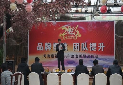 ???????????新春佳節(jié)即將到來,在這辭舊迎新、舉國歡慶的時(shí)刻,1月10日河南康泰全體員工在柯拉莫?dú)g聚一堂,隆重召開“河南康泰2015年度總結(jié)表彰大會(huì)暨2016年迎新春聯(lián)歡會(huì)”。河南康泰董事長葉日才、股東林富康、總經(jīng)理朱鵬飛、銷售總監(jiān)石開廣、銷售副總?cè)~富、生產(chǎn)副總林化平、銷售客服部經(jīng)理彭大波等公司領(lǐng)導(dǎo)出席了本次年會(huì)。